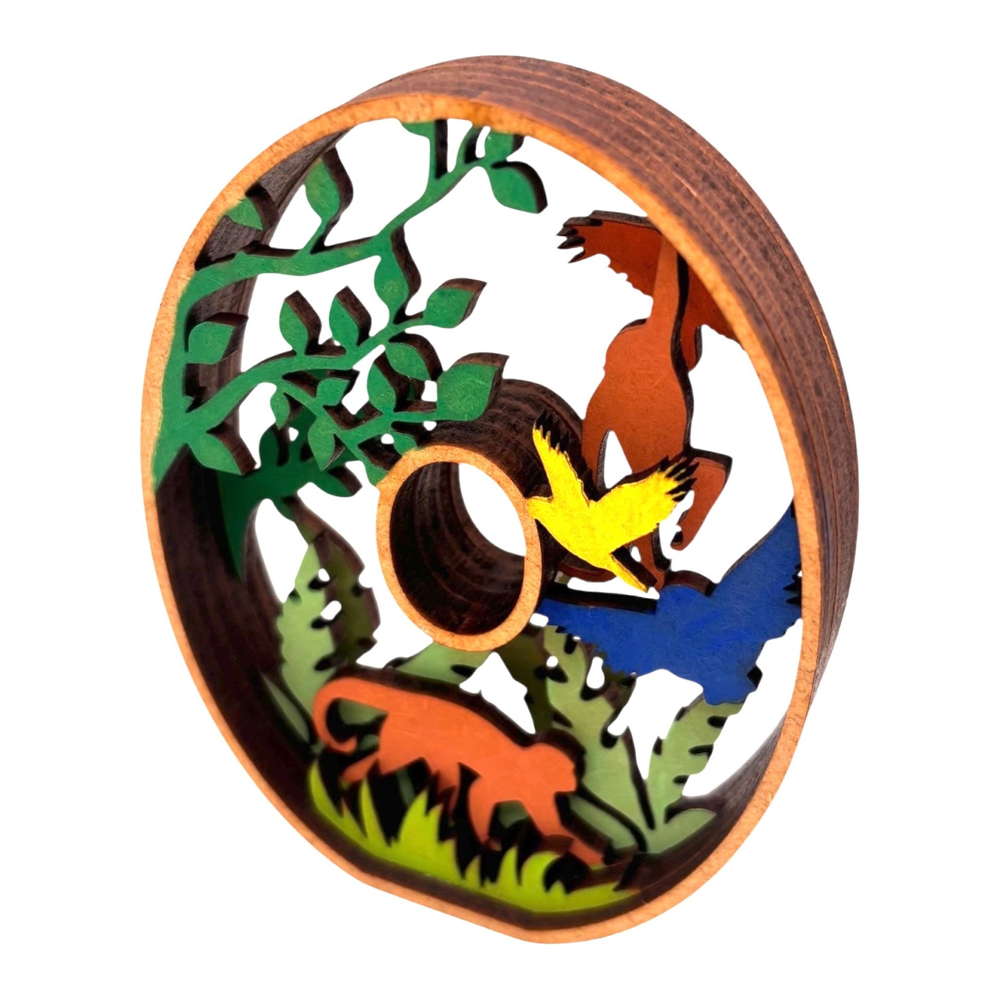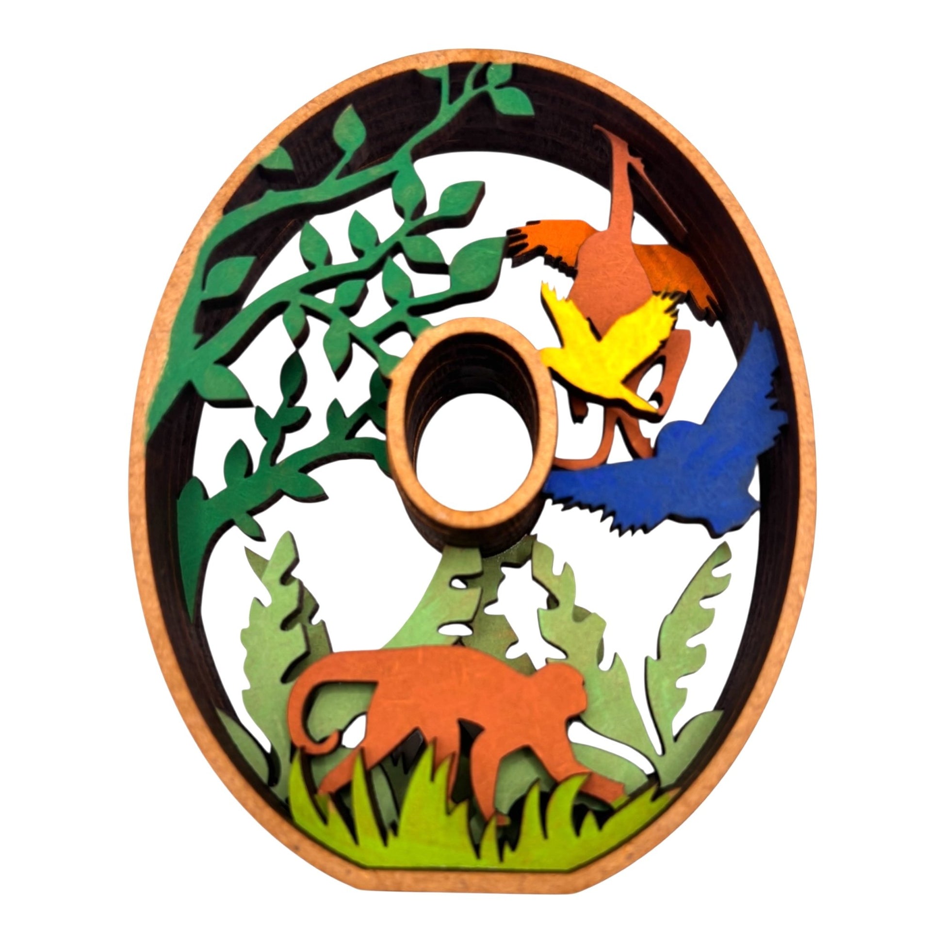 Dale un toque original y artístico a tu interior con esta decoración en forma de la letra "O" . Un auténtico diorama 3D, esta letra presenta una cautivadora decoración que representa un paisaje con animales . Cada elemento está pintado y pegado a mano, creando una obra única que añadirá encanto y personalidad a tu espacio.